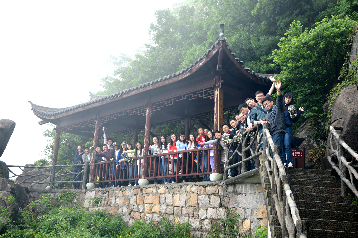 虽然天公不作美,时阴时雨,但是雨后的四明山空气更加清新,无愧于“天然氧吧”的称号。大家一边爬山欣赏美景,一边听导游介绍四明山的植物资源和地质地貌介绍,从中学到了不少自然科学知识。四明山纯净的空气、丰富的植被、山清水秀的美景使大家深深陶醉其中,留恋忘返。联想到城市中的雾霾天气,大家不禁感慨万千,经济的快速发展、社会的进步固然给我们的生活带来了很大的便利,但是环境问题也日益突出,直接关系到我们每个人的生命健康和国家的长远发展,正象习主席所说的“金山银山不如绿水青山”。作为科学院的一员,如何尽我们的力量保护环境,改善环境,促进环保,是我们每个人肩上应负的责任。