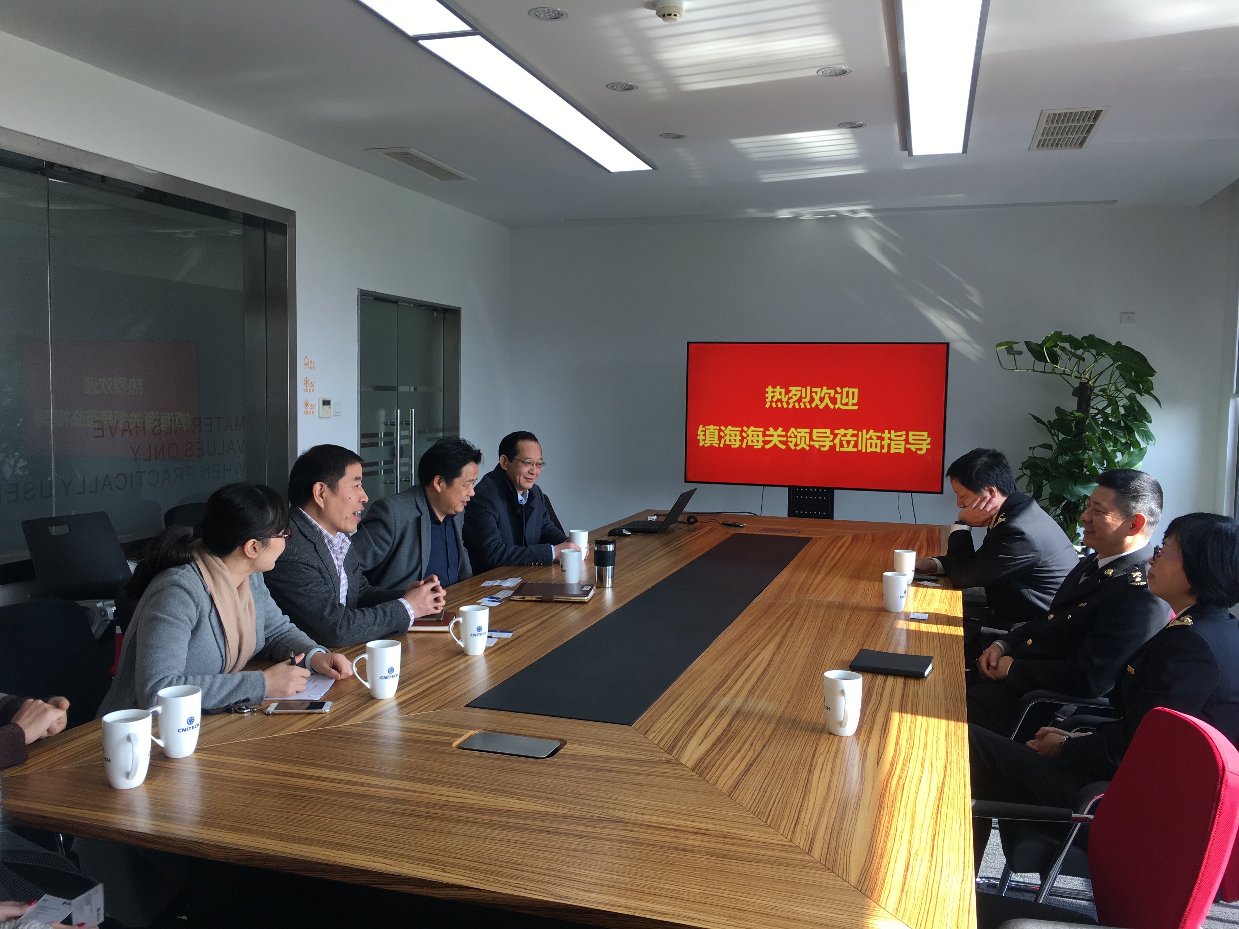 2017年11月23日上午,镇海海关关长沈鹂、副关长沈贤飞、审批科科长胡剑松一行访问材料所。副所长郑剑、公共技术服务中心主任李勇、副主任张晓红接待了海关一行,所长黄政仁与其进行了座谈。