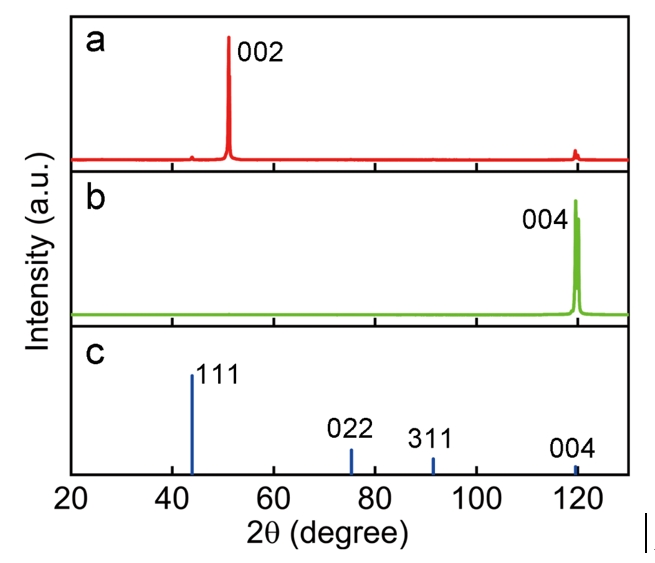 图1. 新型单晶金刚石XRD衍射谱(a)、传统立方相金刚石XRD衍射谱(b)