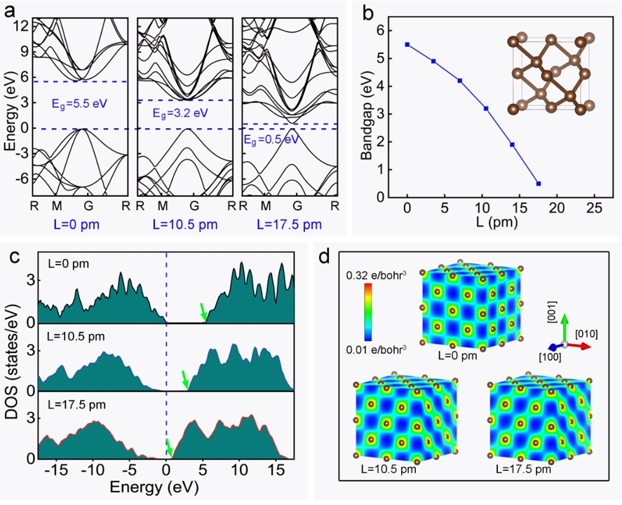 图3. 金刚石中碳原子位移引起的电子结构变化